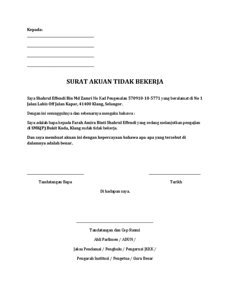Contoh Surat Akuan Sumpah Isteri Tidak Bekerja : Cerai Secara Baik Cerai Dalam Mahkamah Kin Co. Contoh akuan sumpah seperti di bawah: Contoh surat pengesahan pendapatan ibu bapa yang bekerja sendiri. By admin posted on november 24, 2020. Tarikh bayaran elaun oku 2020.